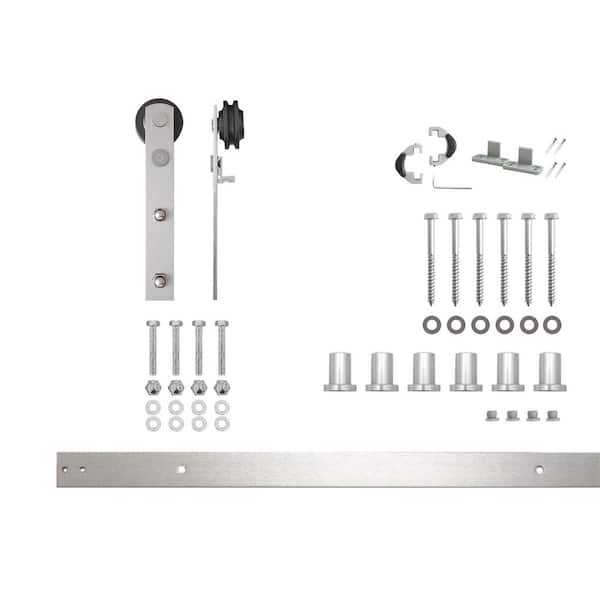 8 ft./96 in. Brushed Nickel Non-Bypass Sliding Barn Door Hardware Kit Arrow Design Roller for Single Door