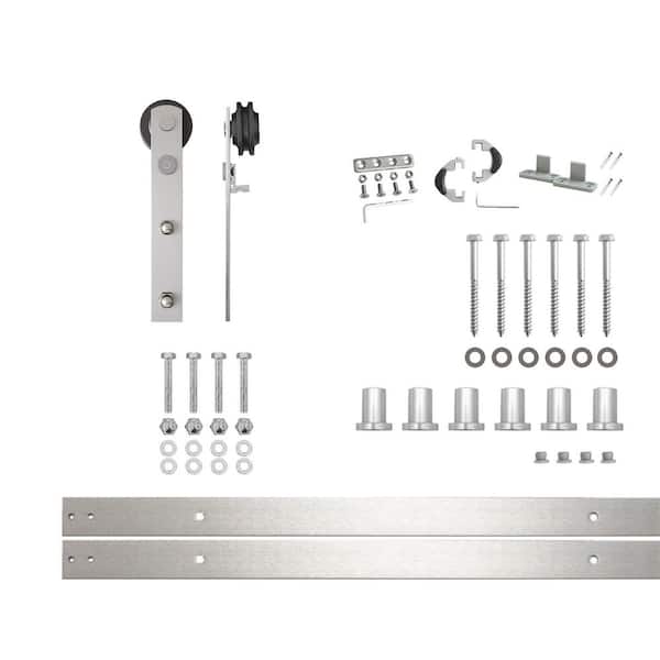 9 ft./108 in. Brushed Nickel Non-Bypass Sliding Barn Door Hardware Kit Straight Design Roller for Single Door