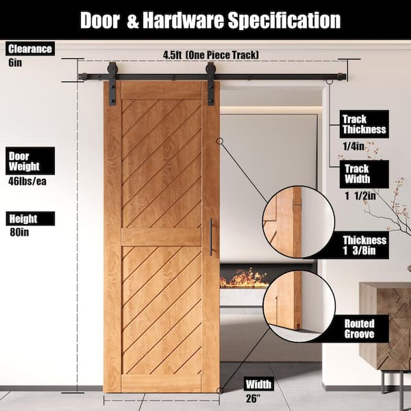 XT1 26 in. x 80 in. C-Panel Early American Slanted Stripe Design Solid Pine Wood Sliding Barn Door with Hardware Kit