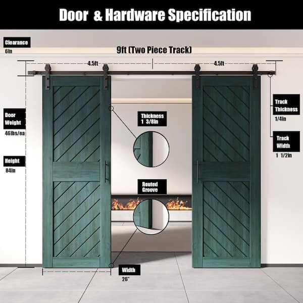 XT1 26 in. x 84 in. C-Panel Royal Pine Slanted Stripe Design Double Pine Wood Sliding Barn Door with Hardware Kit