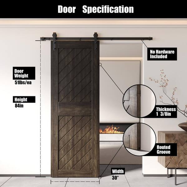 XT1 30 in. x 84 in. C-Panel Solid Core Ebony Slanted Stripe Design Pine Wood Interior Sliding Barn Door Slab