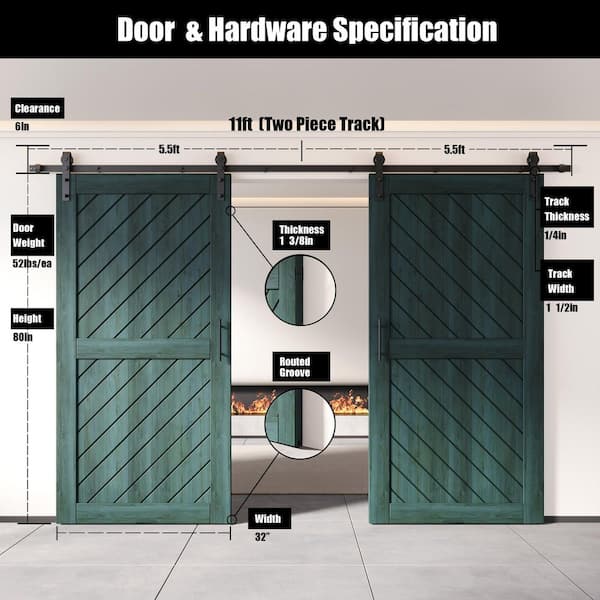 XT1 32 in. x 80 in. C-Panel Royal Pine Slanted Stripe Design Double Pine Wood Sliding Barn Door with Hardware Kit
