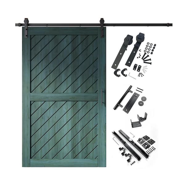 XT1 48 in. x 80 in. C-Panel Royal Pine Slanted Stripe Design Solid Pine Wood Sliding Barn Door with Hardware Kit