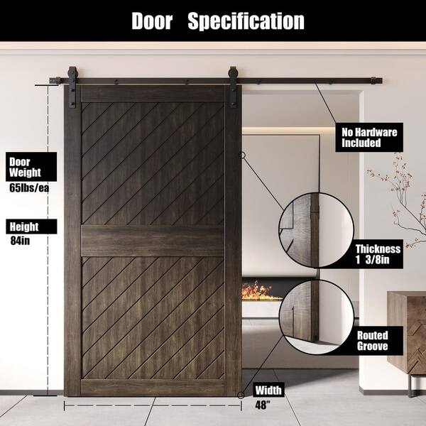 XT1 48 in. x 84 in. C-Panel Solid Core Ebony Slanted Stripe Design Pine Wood Interior Sliding Barn Door Slab