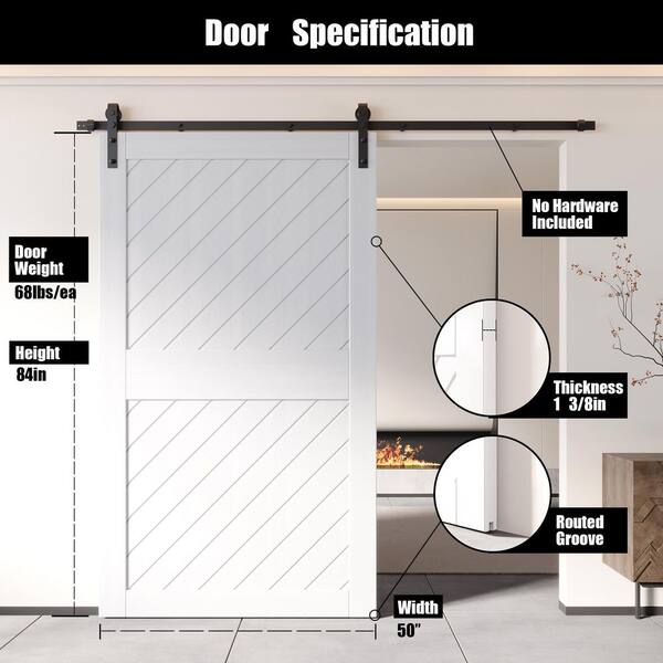 XT1 50 in. x 84 in. C-Panel Solid Core White Slanted Stripe Design Pine Wood Interior Sliding Barn Door Slab