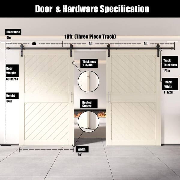 XT1 50 in. x 84 in. C-Panel Tinsmith Gray Slanted Stripe Design Double Pine Wood Sliding Barn Door with Hardware Kit