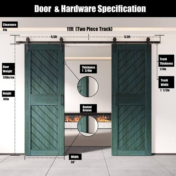 XT2 30 in. x 84 in. C-Panel Royal Pine Slanted Stripe Design Double Pine Wood Sliding Barn Door with Hardware Kit