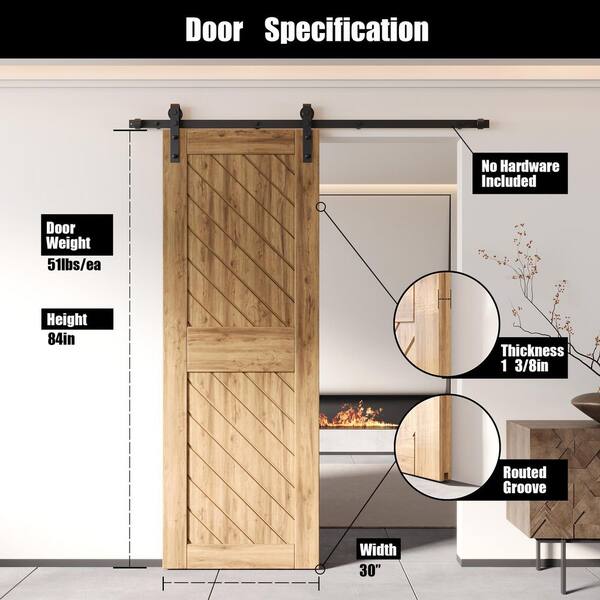 XT2 30 in. x 84 in. C-Panel Solid Core Unfinished Slanted Stripe Design Pine Wood Interior Sliding Barn Door Slab
