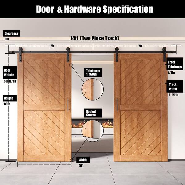 XT2 40 in. x 80 in. C-Panel Early American Slanted Stripe Design Double Pine Wood Sliding Barn Door with Hardware Kit