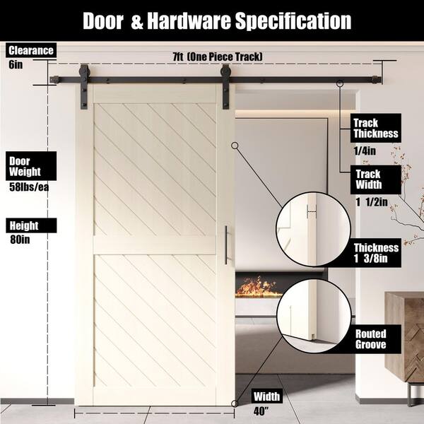 XT2 40 in. x 80 in. C-Panel Tinsmith Gray Slanted Stripe Design Solid Pine Wood Sliding Barn Door with Hardware Kit
