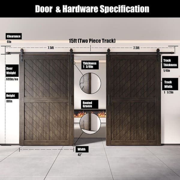 XT2 42 in. x 80 in. C-Panel Ebony Slanted Stripe Design Double Pine Wood Sliding Barn Door with Hardware Kit