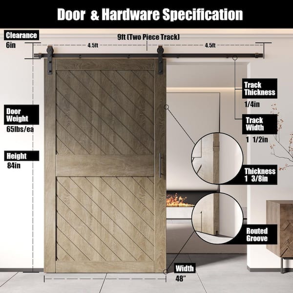XT2 48 in. x 84 in. C-Panel Classic Gray Slanted Stripe Design Solid Pine Wood Sliding Barn Door with Hardware Kit