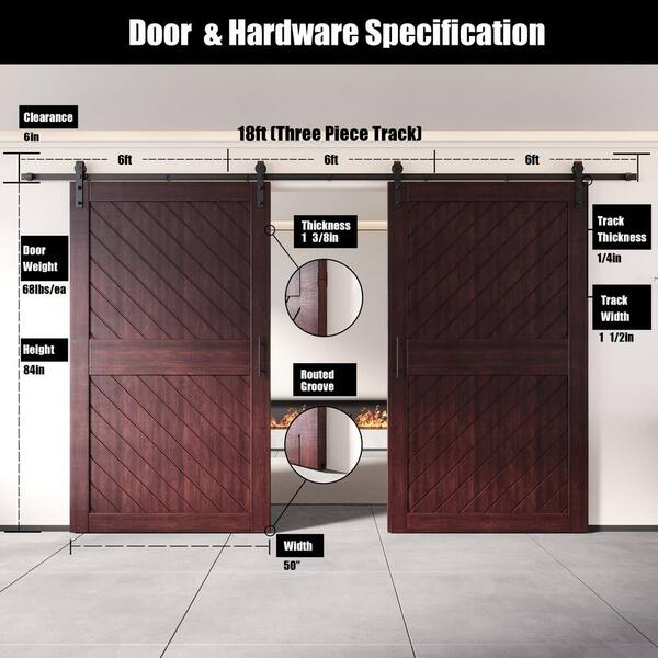 XT2 50 in. x 84 in. C-Panel Red Mahogany Slanted Stripe Design Double Pine Wood Sliding Barn Door with Hardware Kit