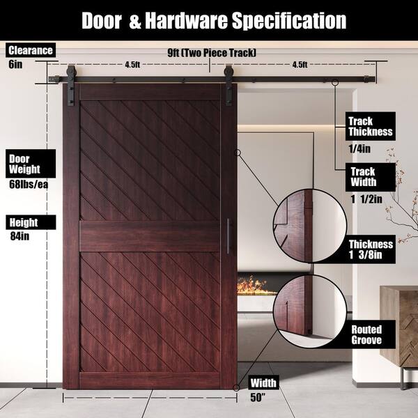 XT2 50 in. x 84 in. C-Panel Red Mahogany Slanted Stripe Design Solid Pine Wood Sliding Barn Door with Hardware Kit