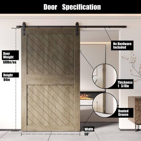 XT2 50 in. x 84 in. C-Panel Solid Core Classic Gray Slanted Stripe Design Pine Wood Interior Sliding Barn Door Slab
