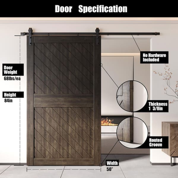 XT2 50 in. x 84 in. C-Panel Solid Core Ebony Slanted Stripe Design Pine Wood Interior Sliding Barn Door Slab