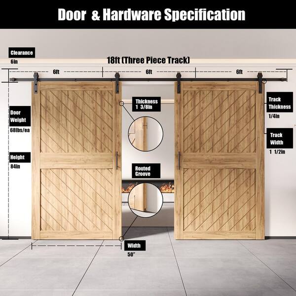 XT2 50 in. x 84 in. C-Panel Unfinished Slanted Stripe Design Double Pine Wood Sliding Barn Door with Hardware Kit