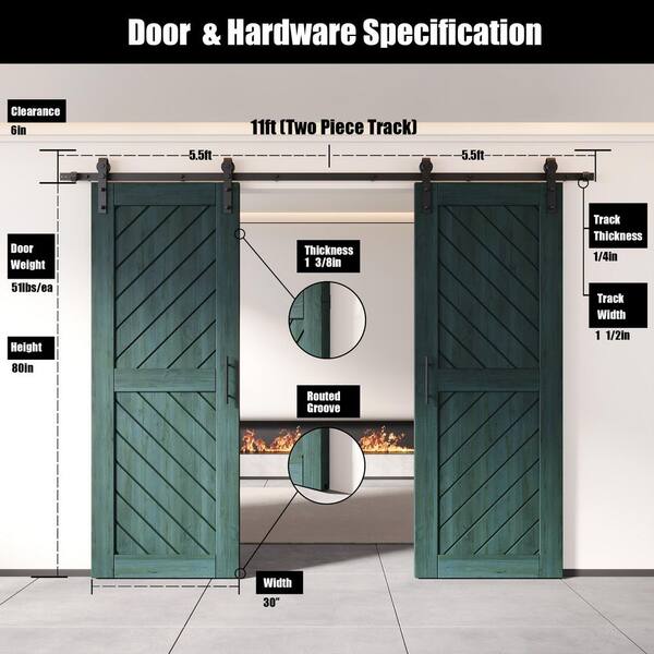 XT3 30 in. x 80 in. C-Panel Royal Pine Slanted Stripe Design Double Pine Wood Sliding Barn Door with Hardware Kit
