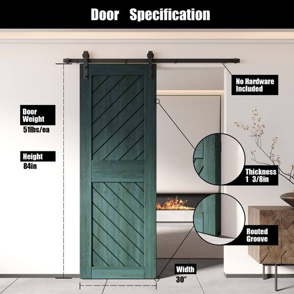XT3 30 in. x 84 in. C-Panel Solid Core Royal Pine Slanted Stripe Design Pine Wood Interior Sliding Barn Door Slab