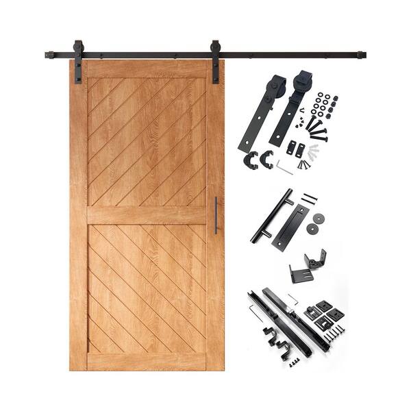XT3 32 in. x 80 in. C-Panel Early American Slanted Stripe Design Solid Pine Wood Sliding Barn Door with Hardware Kit
