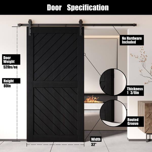 XT3 32 in. x 80 in. C-Panel Solid Core Black Slanted Stripe Design Pine Wood Interior Sliding Barn Door Slab
