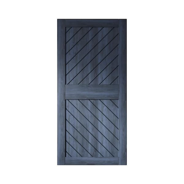 XT3 32 in. x 84 in. C-Panel Solid Core Navy Slanted Stripe Design Pine Wood Interior Sliding Barn Door Slab