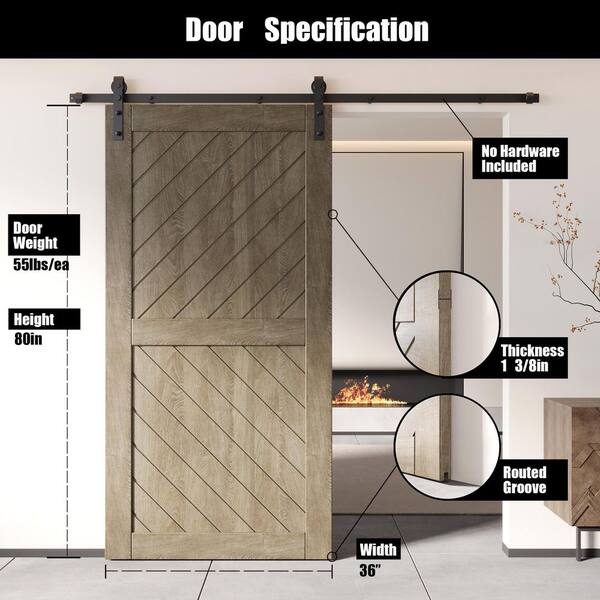 XT3 36 in. x 80 in. C-Panel Solid Core Classic Gray Slanted Stripe Design Pine Wood Interior Sliding Barn Door Slab