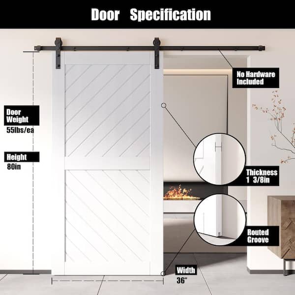 XT3 36 in. x 80 in. C-Panel Solid Core White Slanted Stripe Design Pine Wood Interior Sliding Barn Door Slab