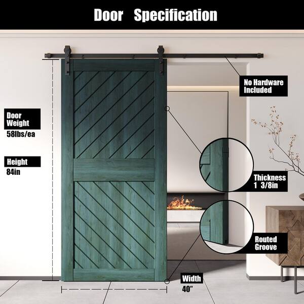 XT3 40 in. x 84 in. C-Panel Solid Core Royal Pine Slanted Stripe Design Pine Wood Interior Sliding Barn Door Slab
