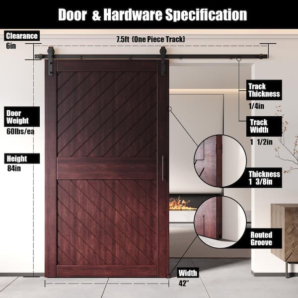 XT3 42 in. x 84 in. C-Panel Red Mahogany Slanted Stripe Design Solid Pine Wood Sliding Barn Door with Hardware Kit