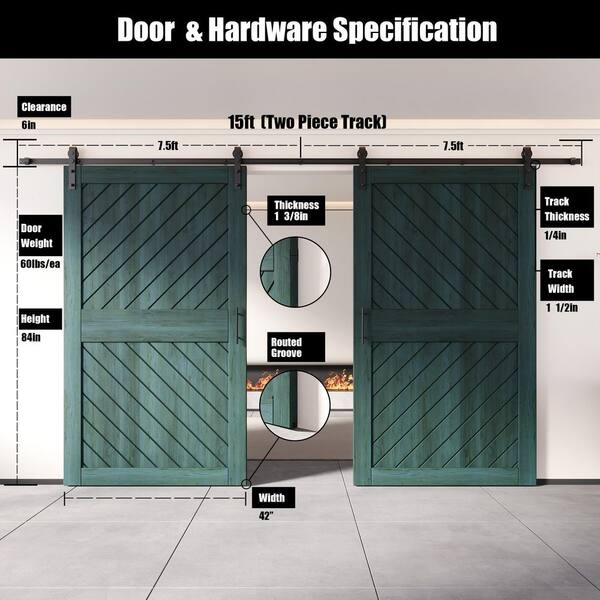XT3 42 in. x 84 in. C-Panel Royal Pine Slanted Stripe Design Double Pine Wood Sliding Barn Door with Hardware Kit