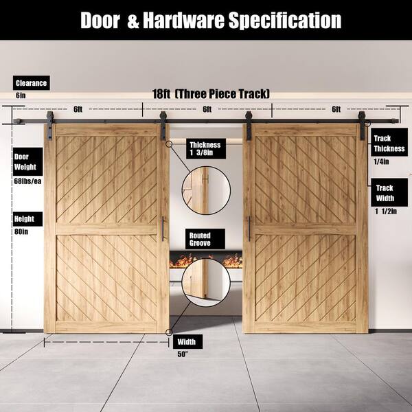 XT3 50 in. x 80 in. C-Panel Unfinished Slanted Stripe Design Double Pine Wood Sliding Barn Door with Hardware Kit
