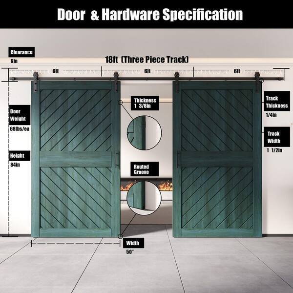 XT3 50 in. x 84 in. C-Panel Royal Pine Slanted Stripe Design Double Pine Wood Sliding Barn Door with Hardware Kit