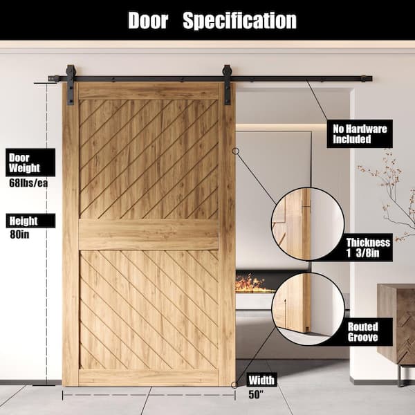 XT3 50 in. x 84 in. C-Panel Solid Core Unfinished Slanted Stripe Design Pine Wood Interior Sliding Barn Door Slab