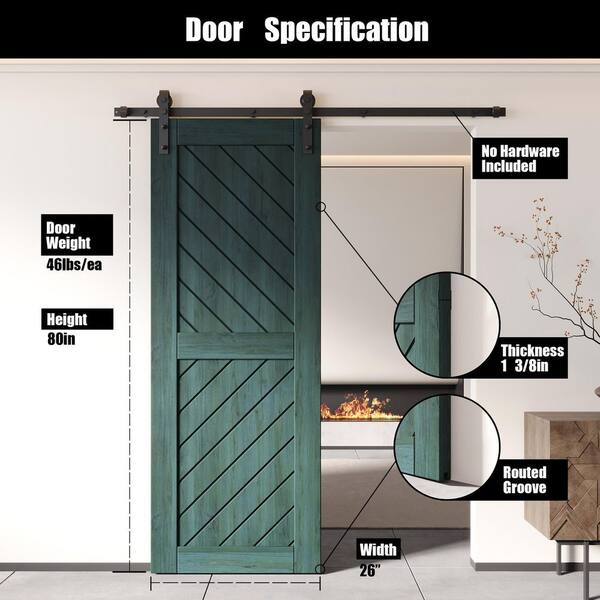 XT4 26 in. x 80 in. C-Panel Solid Core Royal Pine Slanted Stripe Design Pine Wood Interior Sliding Barn Door Slab