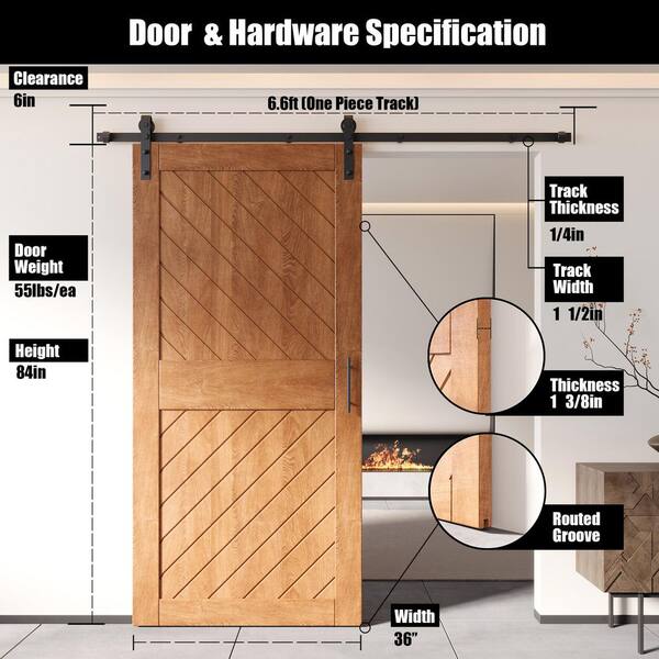 XT4 36 in. x 84 in. C-Panel Early American Slanted Stripe Design Solid Pine Wood Sliding Barn Door with Hardware Kit