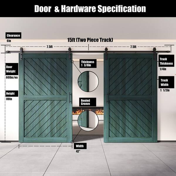 XT4 42 in. x 80 in. C-Panel Royal Pine Slanted Stripe Design Double Pine Wood Sliding Barn Door with Hardware Kit