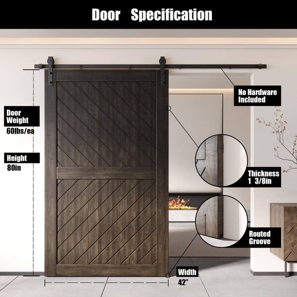 XT4 42 in. x 80 in. C-Panel Solid Core Ebony Slanted Stripe Design Pine Wood Interior Sliding Barn Door Slab
