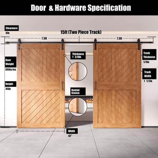 XT4 42 in. x 84 in. C-Panel Early American Slanted Stripe Design Double Pine Wood Sliding Barn Door with Hardware Kit