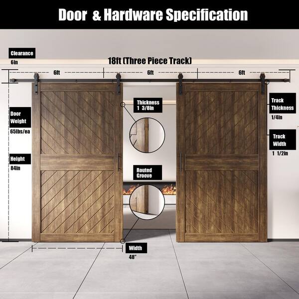 XT4 48 in. x 84 in. C-Panel Dark Walnut Slanted Stripe Design Double Pine Wood Sliding Barn Door with Hardware Kit