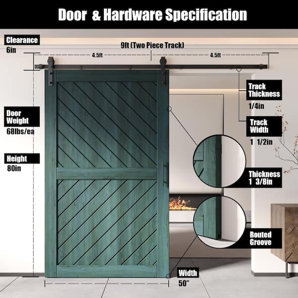 XT4 50 in. x 80 in. C-Panel Royal Pine Slanted Stripe Design Solid Pine Wood Sliding Barn Door with Hardware Kit