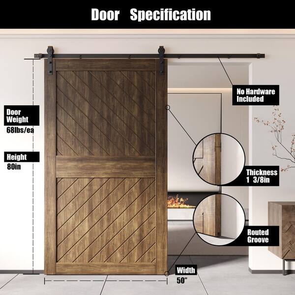 XT4 50 in. x 84 in. C-Panel Solid Core Dark Walnut Slanted Stripe Design Pine Wood Interior Sliding Barn Door Slab