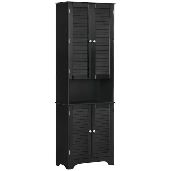 23.5 in. W x 11.75 in. D x 71.75 in. H Black MDF Freestanding Linen Cabinet with Shelf, 2-Cabinets, Black