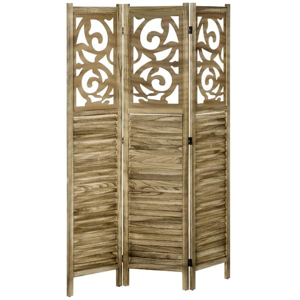 3-Panel Room Divider, 5.5 ft. Tall Wood Indoor Portable Folding Privacy Screens, Brown