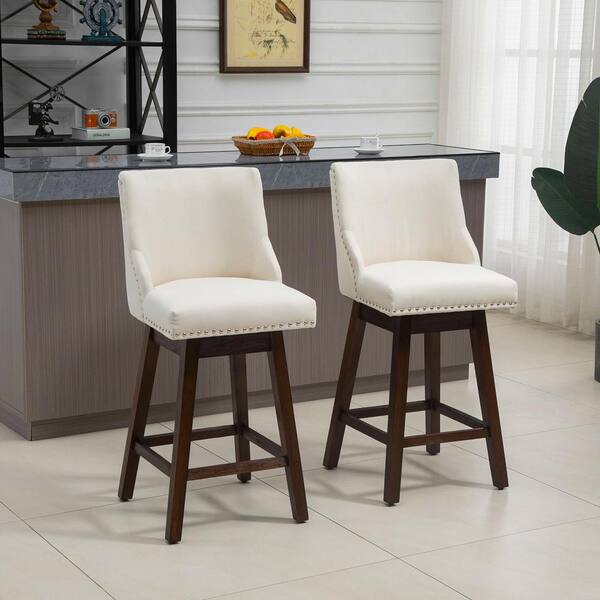 40.25 in. White Mid Back Wood Frame 28.25 in. Bar Stool with Linen seat (Set of 2)