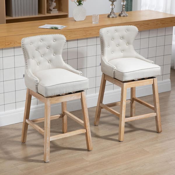 43.25" Cream White Wingback Rubberwood 30" Bar Chair with Polyester Seat, 2 Included
