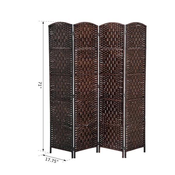6 in. Tall Chestnut Brown Wicker Weave 4-Panel Room Divider Privacy Screen