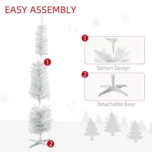 7 ft. Tall Pencil Prelit Artificial Christmas Tree with 500 Colorful Surface Branches, 250 Multicolor LED Lights, White