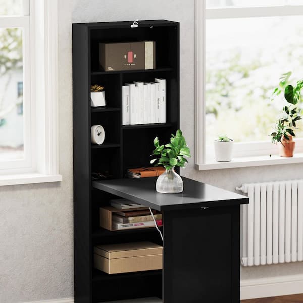 Fold-Out Convertible 20 in. Black Writing Table, Wall Mount Desk Cabinet with Side Shelf Home Office Workstation