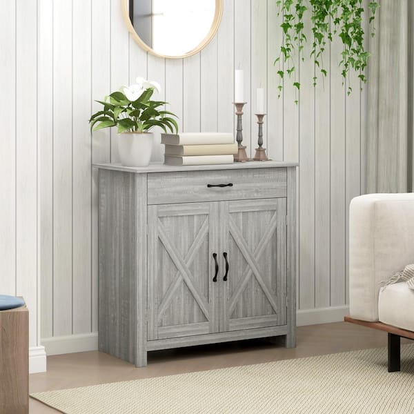 Light Gray MDF 31.5 in. Farmhouse Sideboard with 1 Drawer and Adjustable Shelf